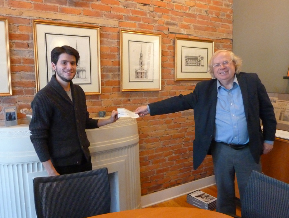 Photo: James Caporicci receiving his cheque from NSoA chair Dr.Ian Ellingham.