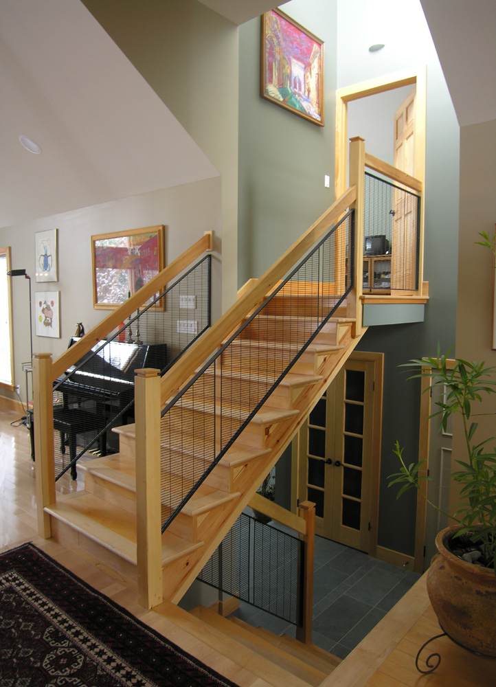 The reconstruction activities involved adding a storey over the garage, to accommodate a new master bedroom, en-suite bathroom and large day-lit closets. She points out that most suburban closets rely on artificial lighting, which often will not reveal the true nature of ones clothing selection - you find out when you are outside and already late. Larisa explains that the house in its earlier life had three poky bedrooms. Now it has two large bedrooms and an office area which can be turned into a third bedroom - but this time the house has a sense of spaciousness, rather than being a collection of small spaces. Larisa followed the design approach expounded in the arts and crafts period - that you get better results when you enlarge a cottage than try to reproduce Versailles on a suburban lot, but the model was different: “Once I decided it was a condominium it was easy.” Larisa also wonders why we still build houses with the main rooms facing the street. The main rooms now face west to its modest-sized garden - rendered private by those mature evergreens. Of course, you can find the expected features of an architects own house: lots of wood, a general concern about energy-efficiency, and lighting - both natural and artificial. And yes, although “completed” last year, there are those bits and pieces not quite finished - although typically such things are tidied up just before the architect-owner decides to sell the house.