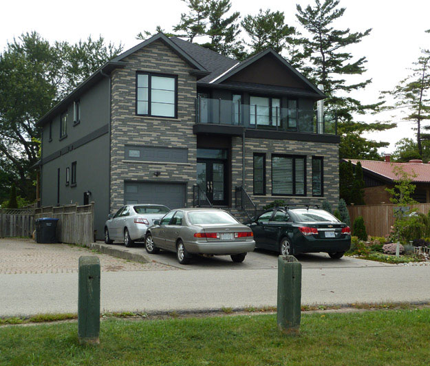 This complex design matter obviously needs further interpretation and exploration. Elegance/unity/Coherence/Balance/ Order/Harmony is a difficult concept to experiment on, and more work needs to be done. But the concept offers significant clues about why a building might be rejected as ugly. A building consisting of disjointed elements that do not relate to an overall theme would be at risk. This was brought to my attention while cycling down a pleasant residential street in a suburb. One new house offered a very mixed set of messages. The house had a problem with unity – although the gables were symmetrical, the windows underneath were defiantly asymmetrical. The facing material was grey brick combined with a rougher, almost-white stone, something that most people in the area would have problems associating with any known prototype. The painted trim was brown – but some panels were painted grey, apparently to match the brick. In addition, the facade was obviously skin deep: the very-visible sides of the house were clad with low-cost pre-finished panels. The result is that the onlooker is confronted with many disparate messages emanating from a small building. In this case, the first glimpse is likely to lead to an unpleasant sense of confusion. The creator might suggest that these mixed messages were there to challenge the viewer, but is that a major role for an otherwise ordinary American suburban house?